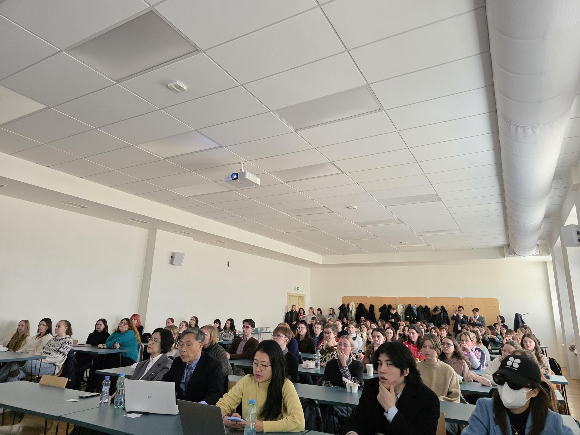 강의실의 자리가 모자라서 바닥에도 앉아서 세미나를 청강하는 참석자들이 많았습니다.